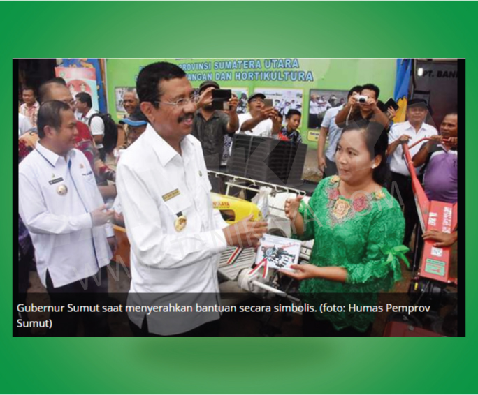 Penyerahan bantuan diserahkan langsung oleh Gubernur Sumut Tengku Erry Nuradi dalam sebuah acara yang dipusatkan di Teluk Dalam, Nias Selatan (Nisel). Demikian keterangan tertulis yang diterima medansatu.com, Kamis (14/9/2017). “Kami melalui dinas terkait terus mendorong produktivitas dalam upaya pencapaian swasembada pangan di Sumut, di antaranya melalui dukungan terhadap program swasembada pangan di seluruh kabupaten/kota termasuk kawasan Kepulauan Nias,” katanya.